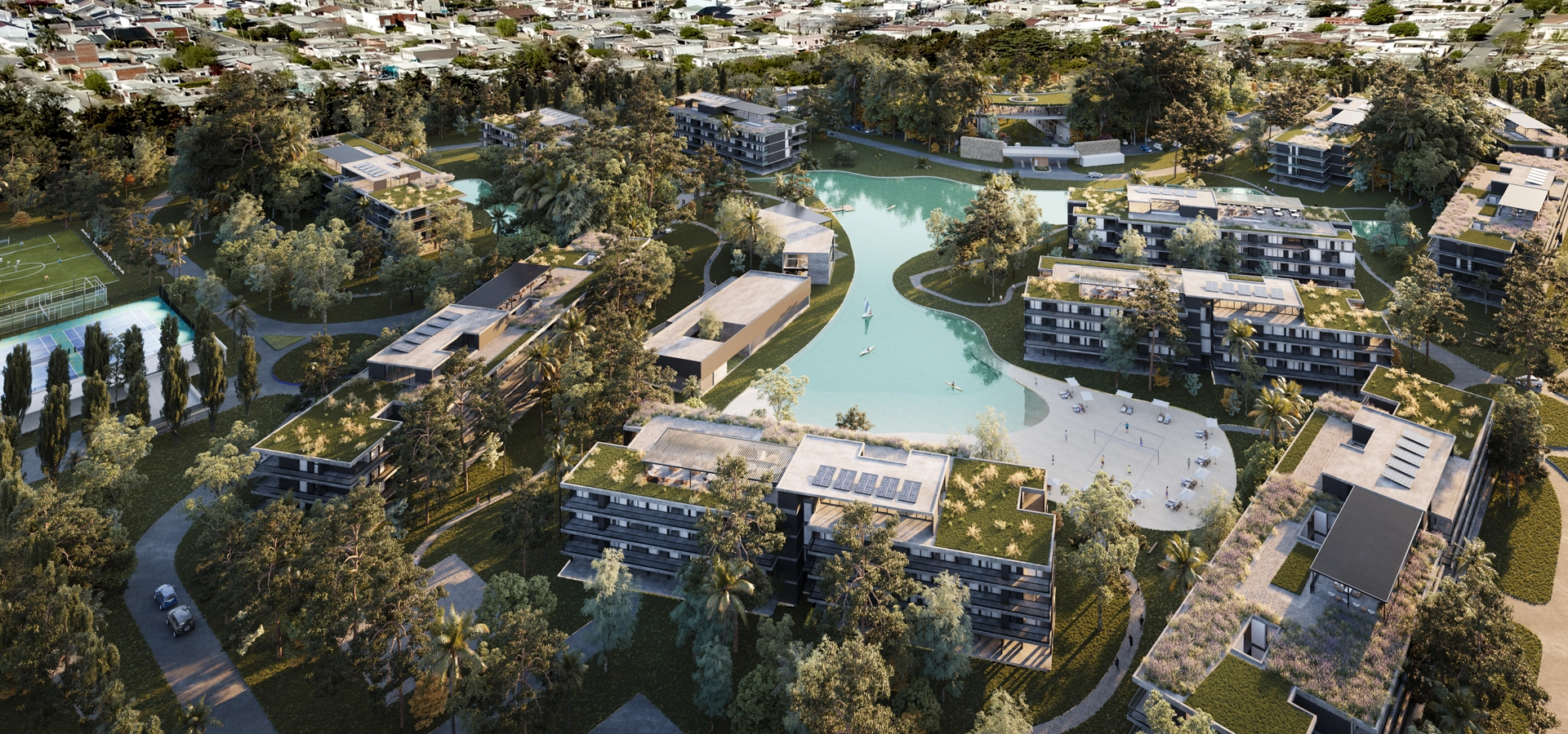Viví rodeado de un entorno verde, senderos y espejos de agua.